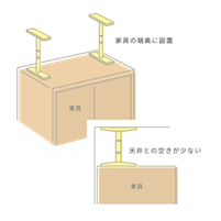 (3)は突っ張り棒を利用する場合の方法です。この時には、天井に家具を支えられる耐力があるかどうかを確認する必要があります。また、家具の上部と天井とがあまり離れていたり、奥行きが少なかったりすると、大きな効果は期待できません。