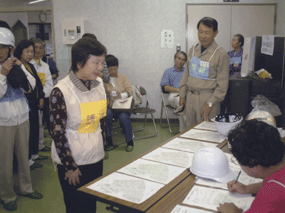 鶴舞自治会は創立30年を経過し、当初の入居世代も70歳前後が多数を占めるところとなり、緊急時の高齢者への支援が地域の重要な課題になってきた。こうした状況のもと、障害者も含め、大地震等の災害発生時に支援が必要な要援護者に対し、平常時の支援と緊急時の支援を両立させたシステムづくりが必要であると考え、緊急時要援護者支援システムを構築した。