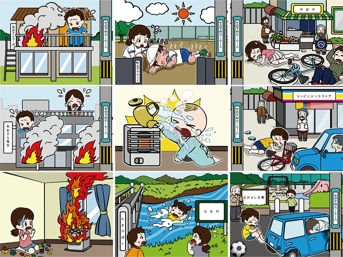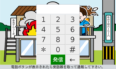 子供向けにアレンジされたイラストを搭載しているので、親子で楽しく通報訓練を体験することができます。